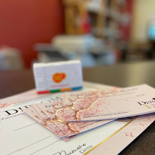 Zelta, sudraba, baltu krāsu un laku iespējams apvienot ar citām digitālās drukas (CMYK) krāsām, tādā veidā radot iespaidīgu efektu*